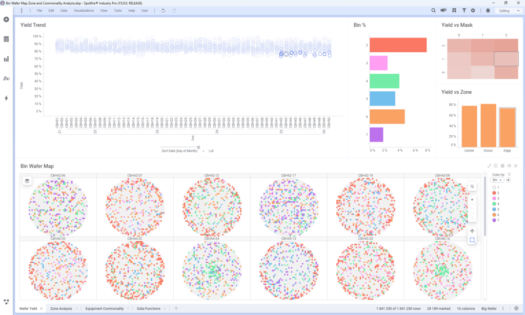 By connecting spatial data with process and test signals, Spotfire Industry Pro transforms wafer maps from static visuals into interactive analytical environments.